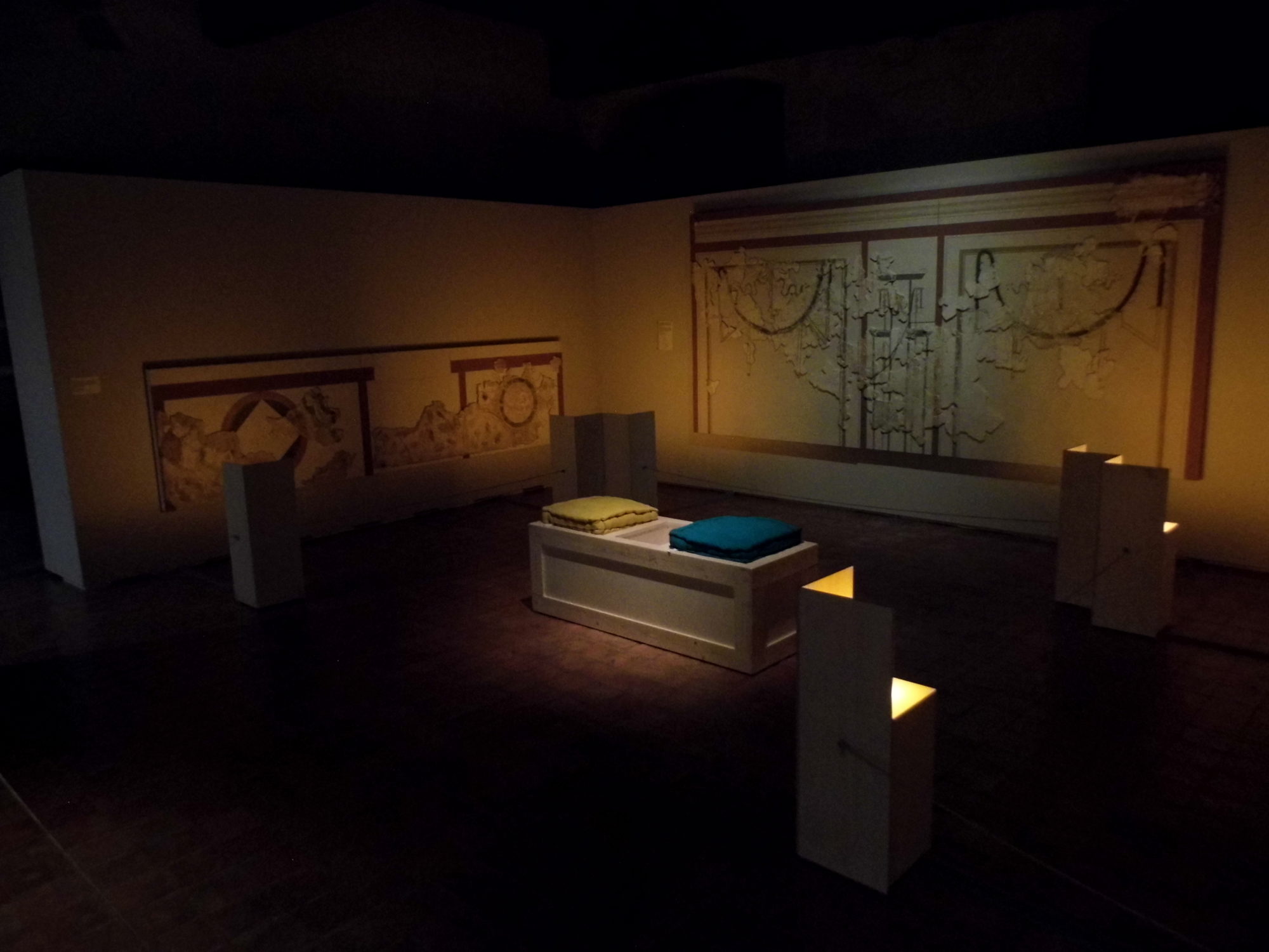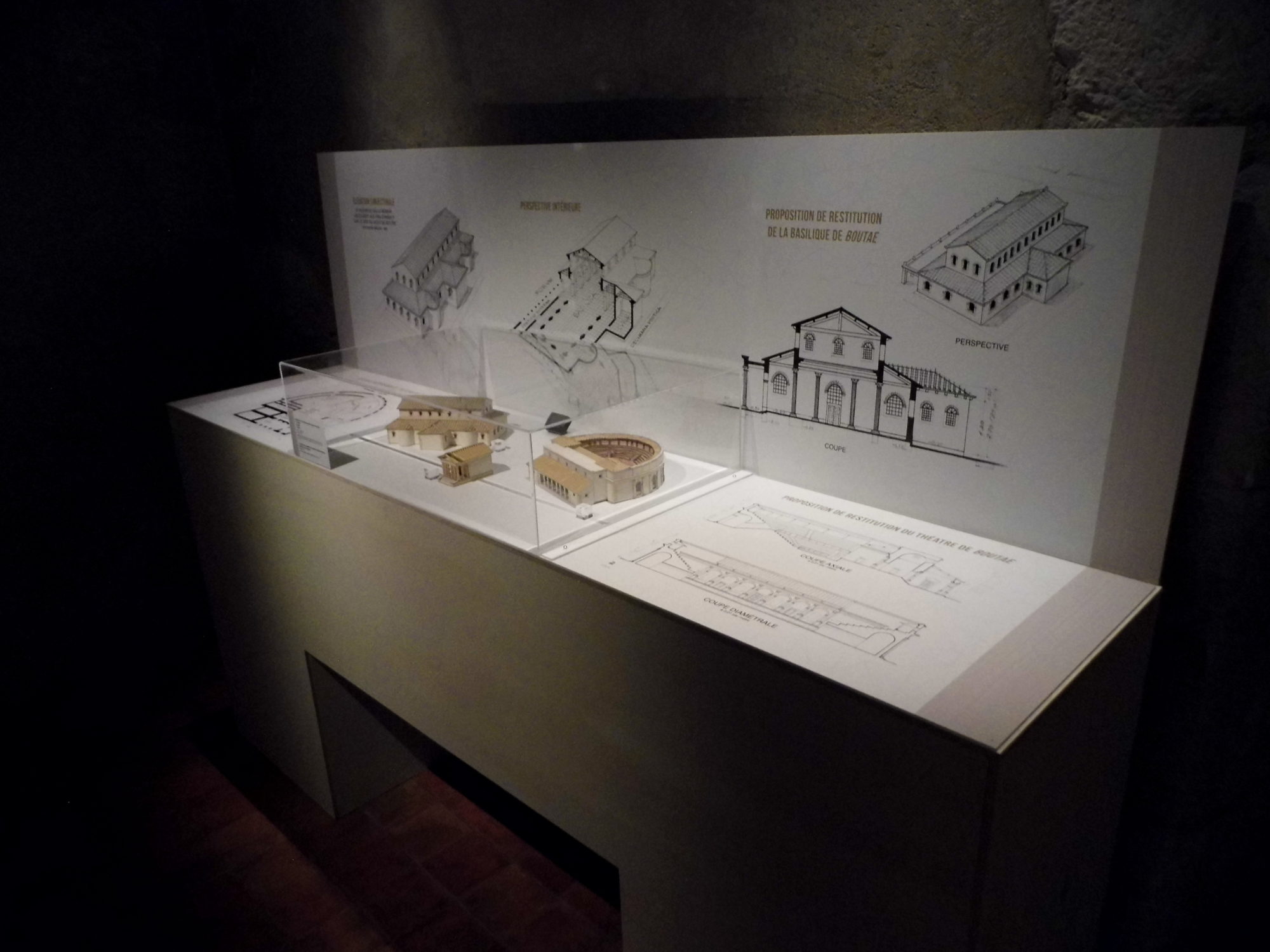 Réalisation d’une scénographie contemporaine qui s’intègre parfaitement au lieu et qui dépoussière la muséographie classique liée à l’archéologie.