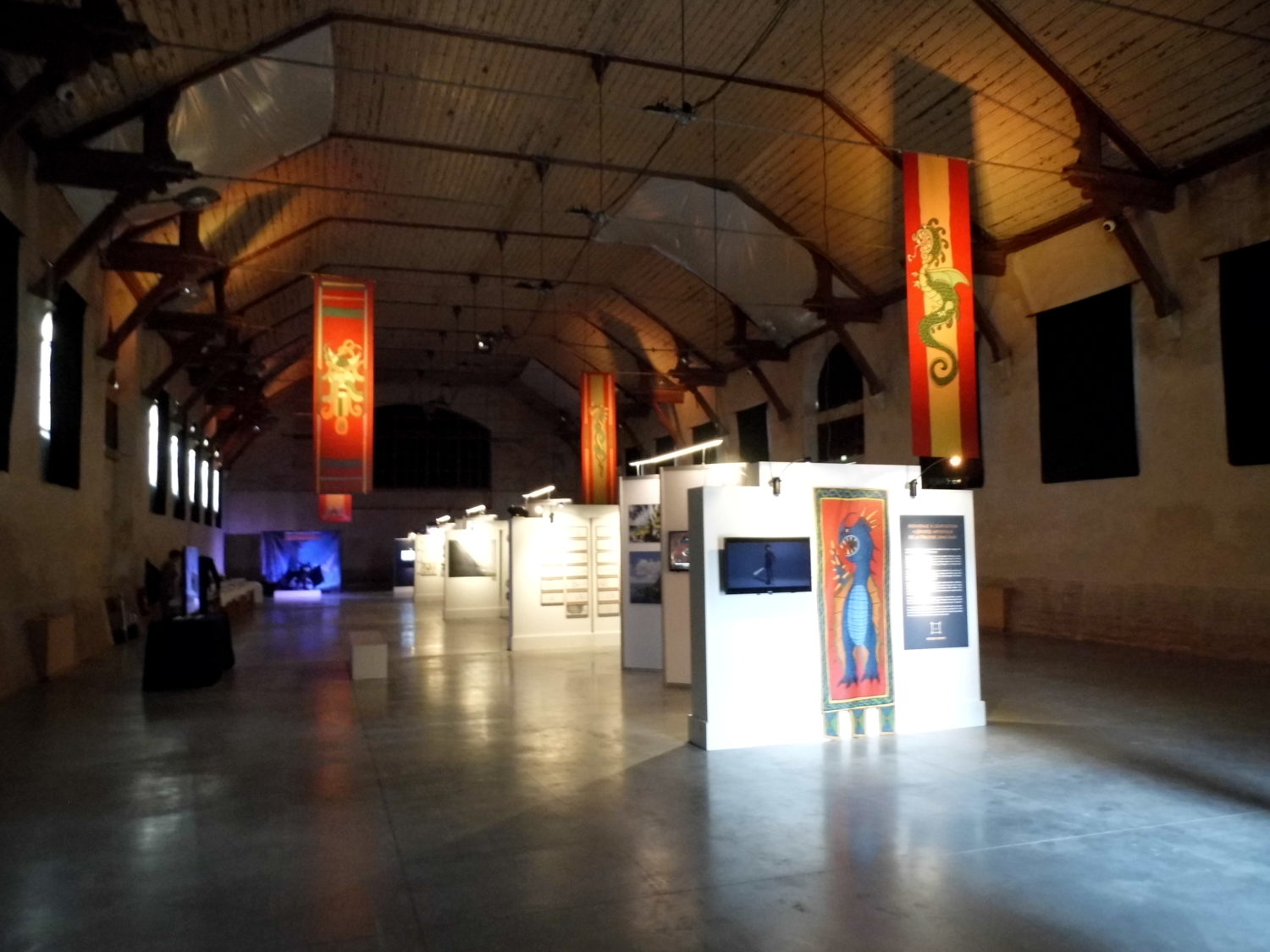 Montage de l’exposition « L’épopée artistique de la Trilogie Dragons » par Art Ludique – Le Musée dans le manège du Haras de la ville d’Annecy.