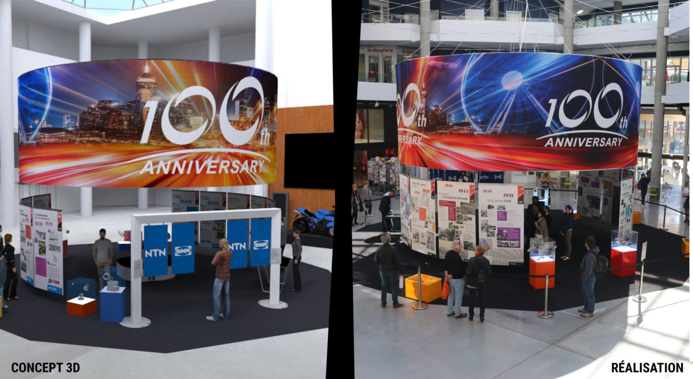 Notre agence est heureuse d’avoir accompagné le groupe NTN-SNR pour la réalisation de l’exposition de leur 100ème anniversaire dans le Forum de BONLIEU.