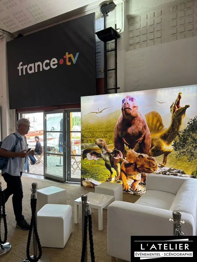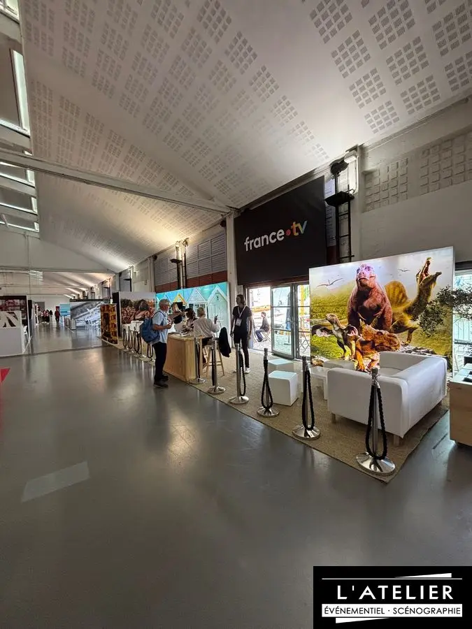 Dans le cadre du festival Sunny Side of the doc (salon sur les documentaires), les services de communication de France TV on fait appel à l’agence l’Atelier pour organiser l’espace stand.