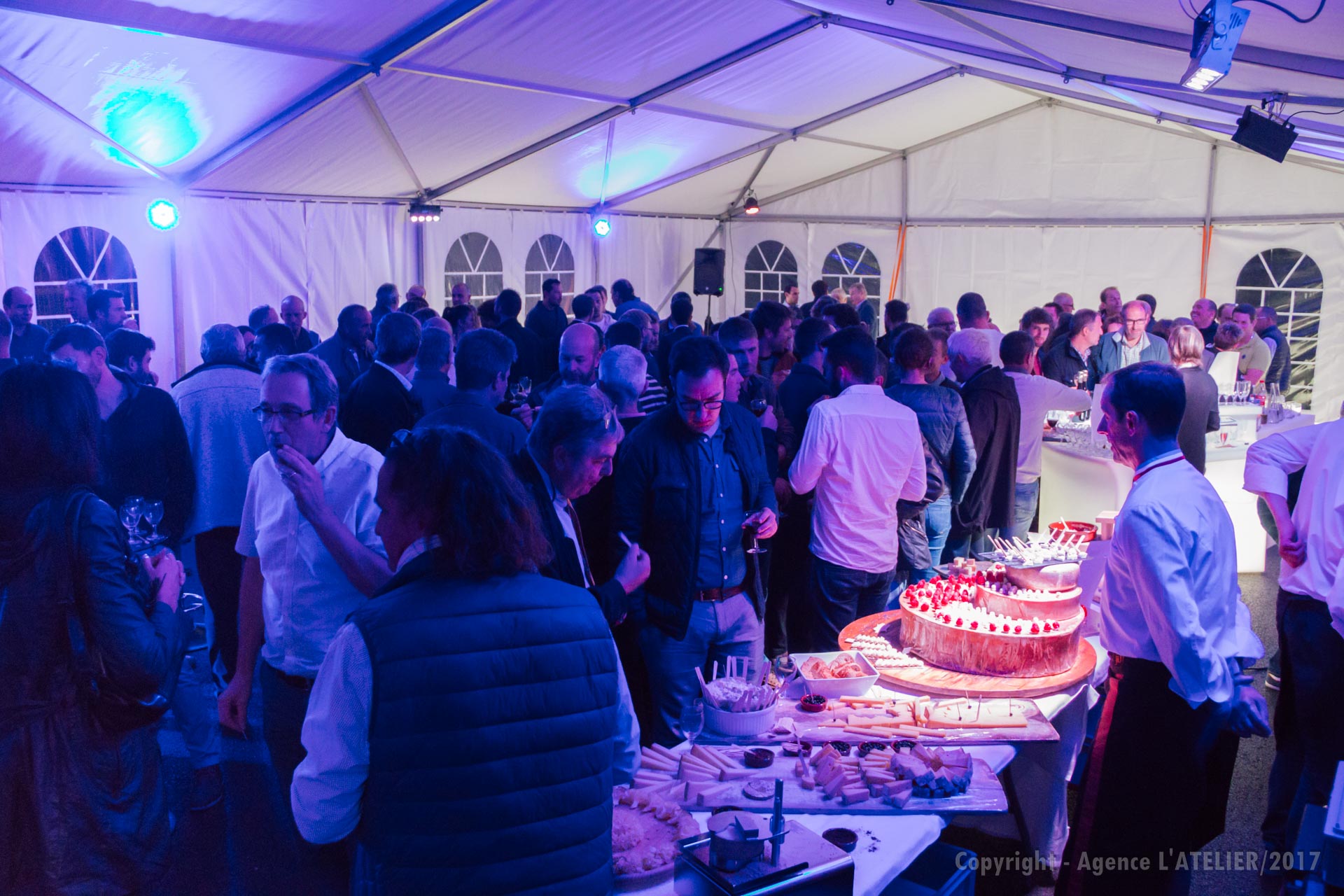 Ce fût un vrai plaisir d’accompagner ce client, novice en la matière, qui a su faire confiance à notre expertise et suivre nos recommandations.  Après avoir défini les besoins et élaboré le cahier des charges, nous avons gérer l’ensemble du dossier : proposition de chapiteau, assistance et suivi des prestataires : traiteur, fromager, sommelier, DJ, esquisse 3D et proposition d’habillage lumière et mobilier, montage de l’événement en fonction du planning adapté aux contraintes de l’entreprise…