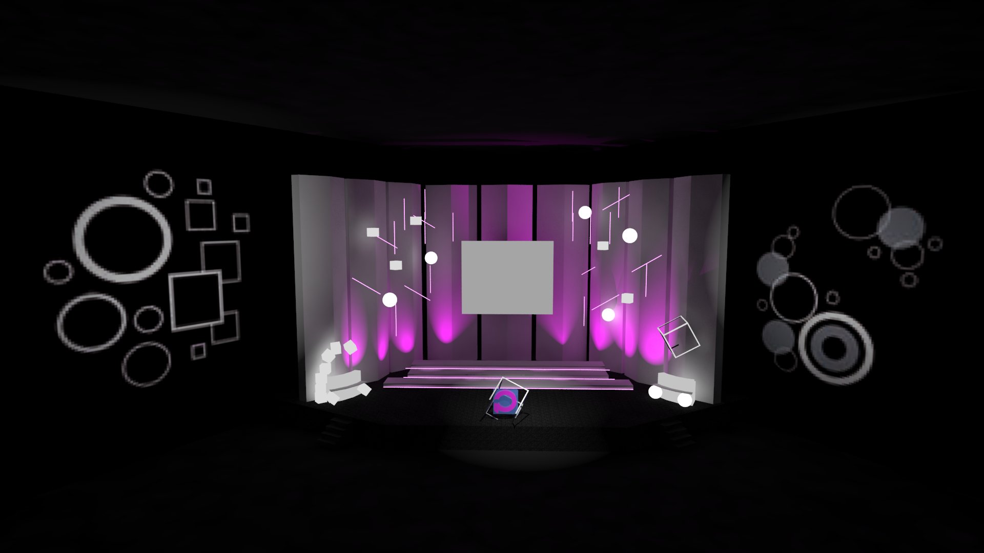 Cube en 3D, boule lumineuses suspendues, mobilier lumineux, jeu de lasers et lumières…
