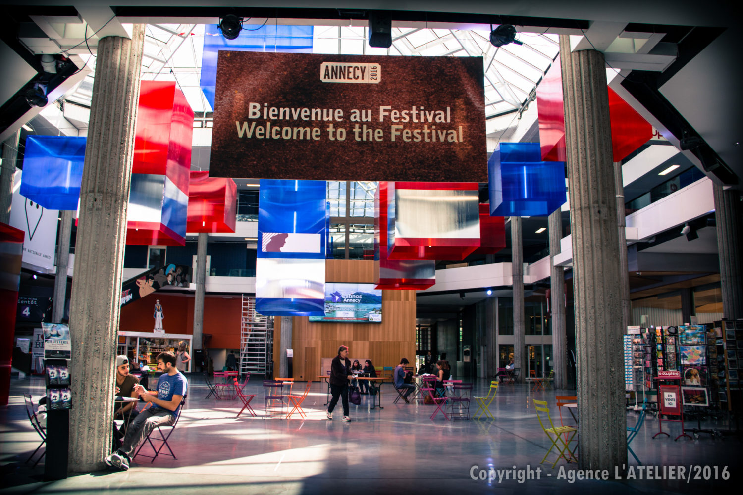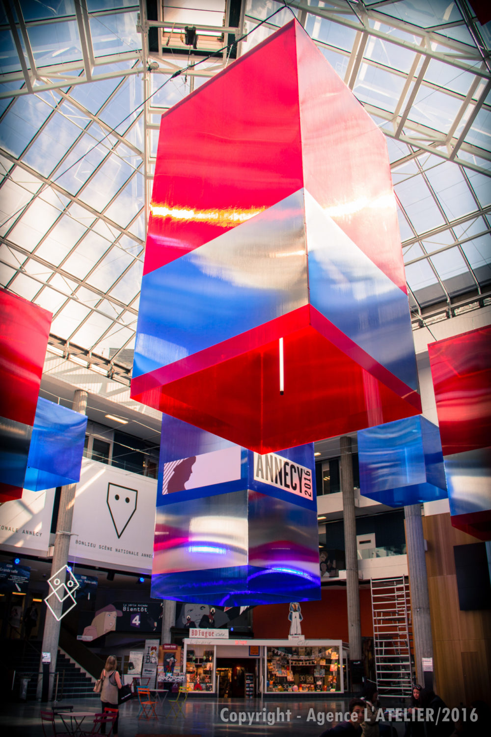 L’agence L’ATELIER a investi à nouveau le forum de BONLIEU pour une scénographie toute en hauteur et transparence en résonance avec le Festival International du Film d’Animation qui s’est tenu cette année du lundi 13 au samedi 18 juin.
