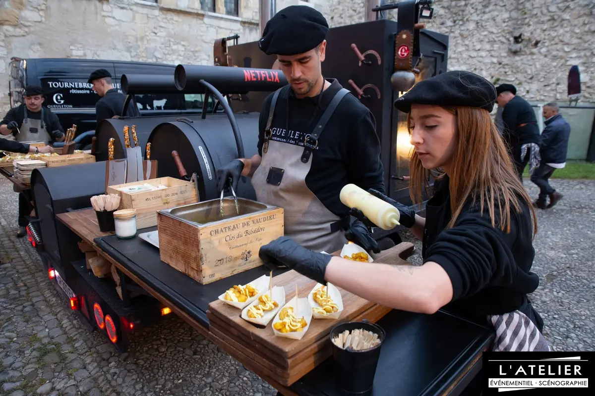 L’agence de communication parisienne PARTIPRIS a retenu l’Agence L’Atelier pour les accompagner sur l’organisation de la soirée Netflix au château D’Annecy pour plus de 600 personnes :