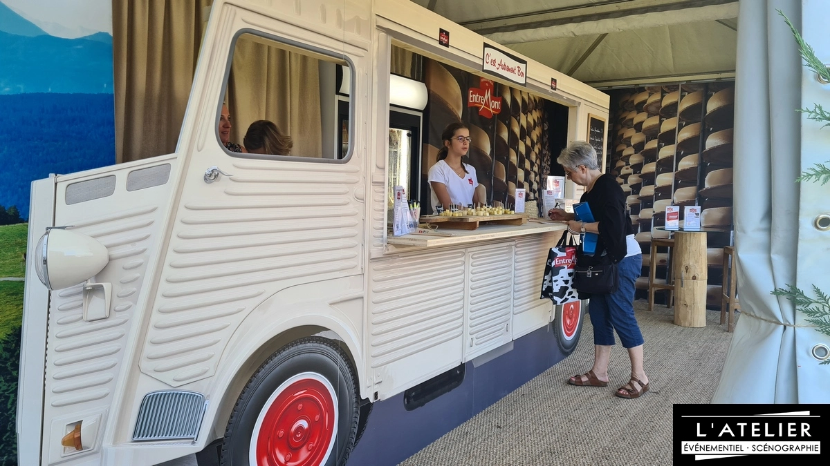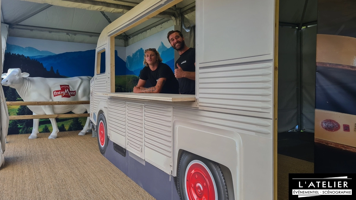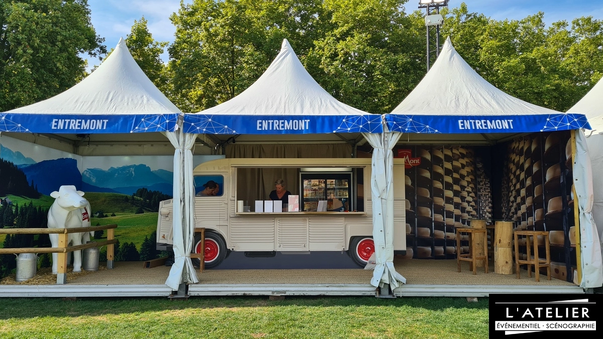 Conception, graphisme, fabrication et pose du stand Entremont par l’équipe de l’Atelier à l’occasion du Martin Fourcade festival sur l’esplanade du Pâquier à Annecy