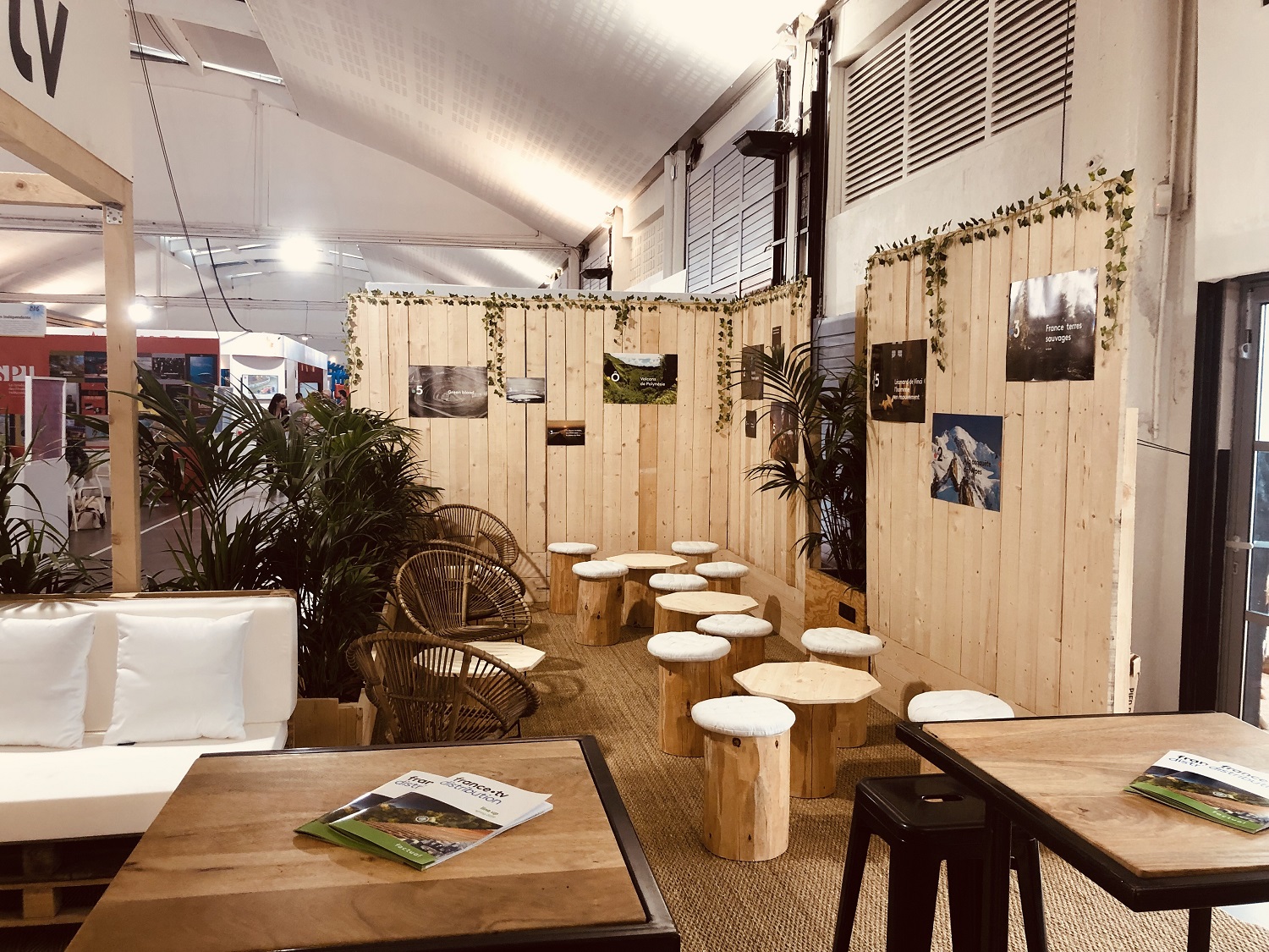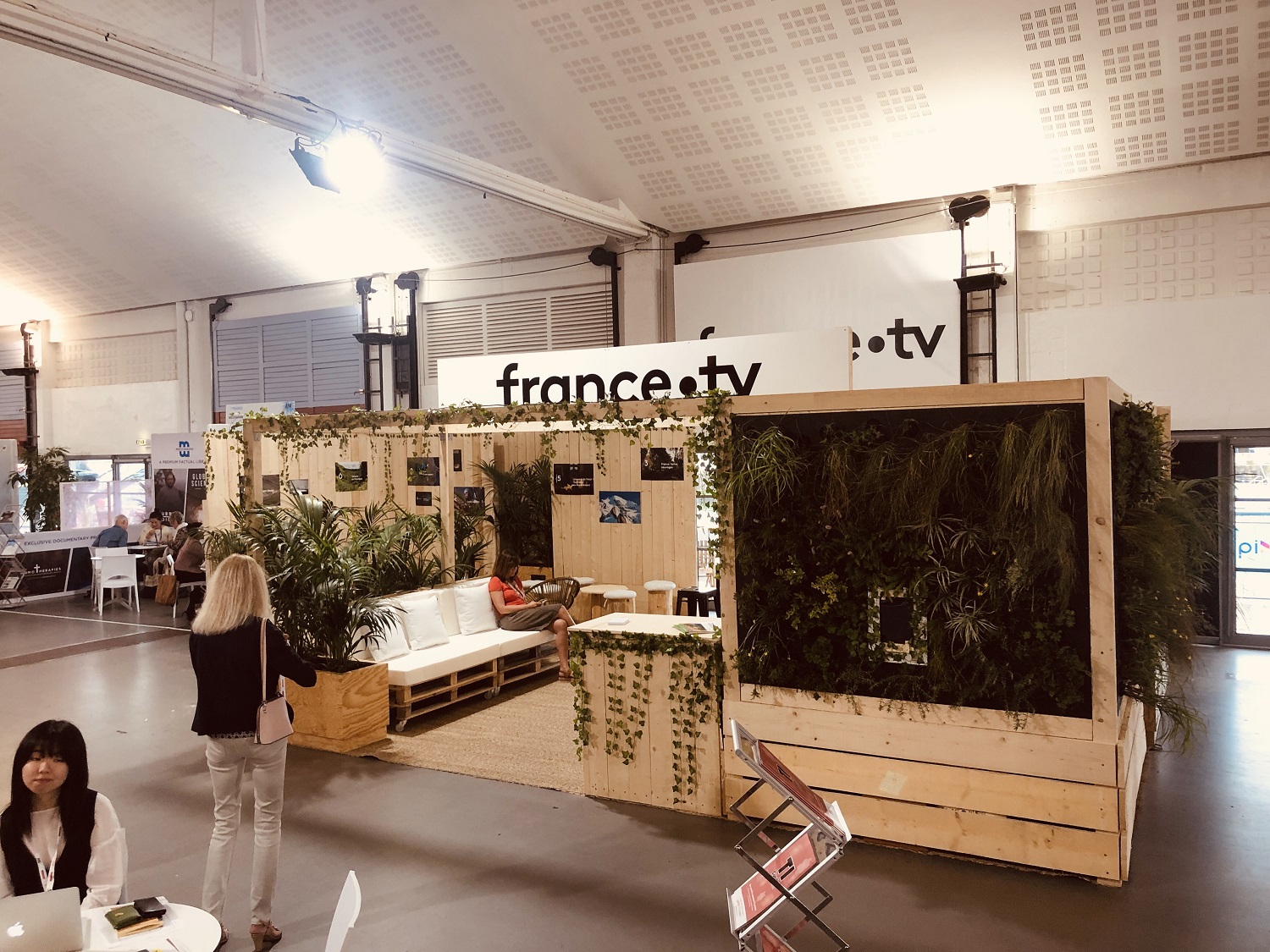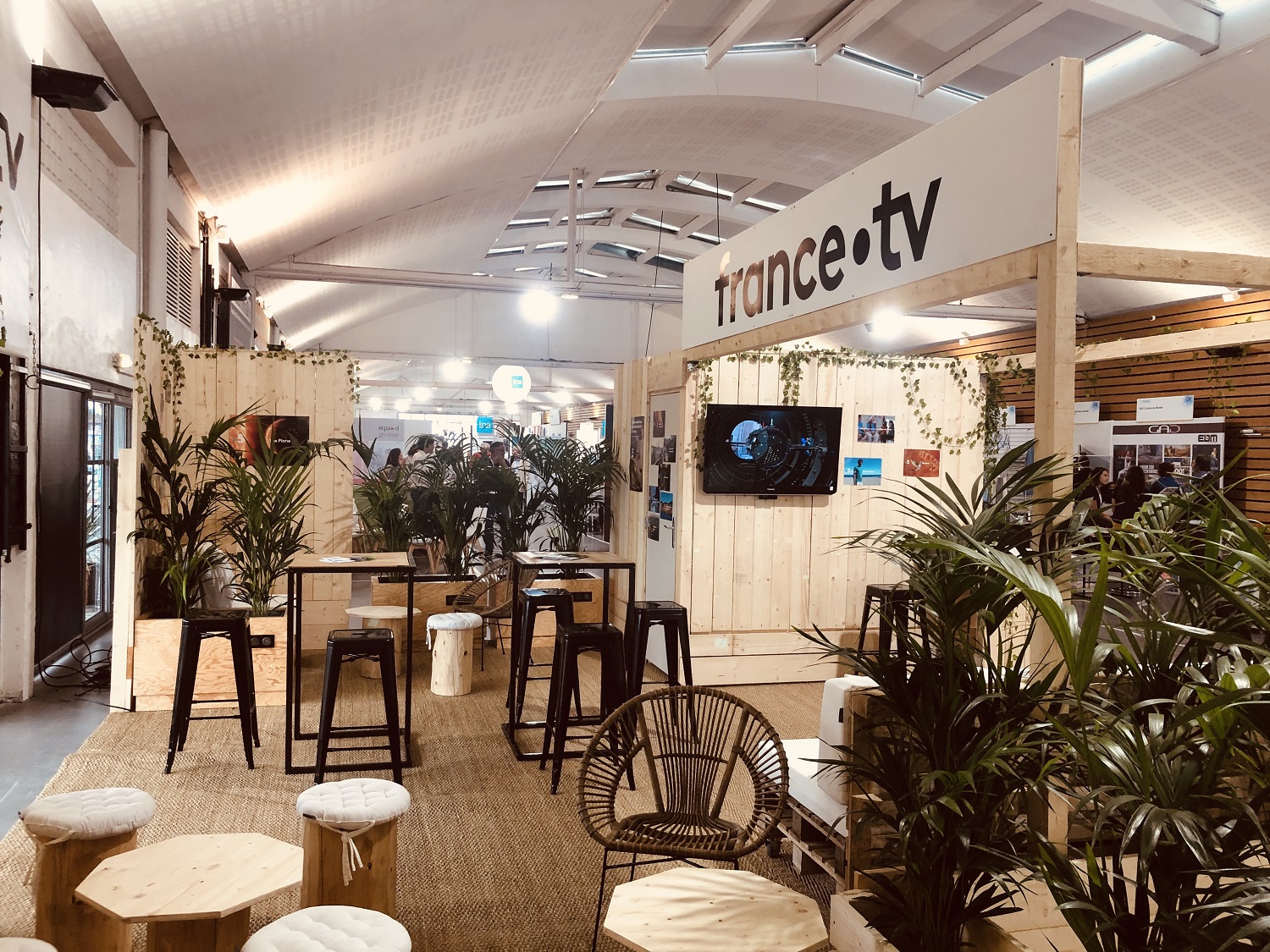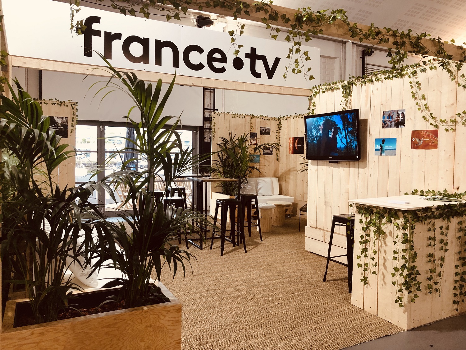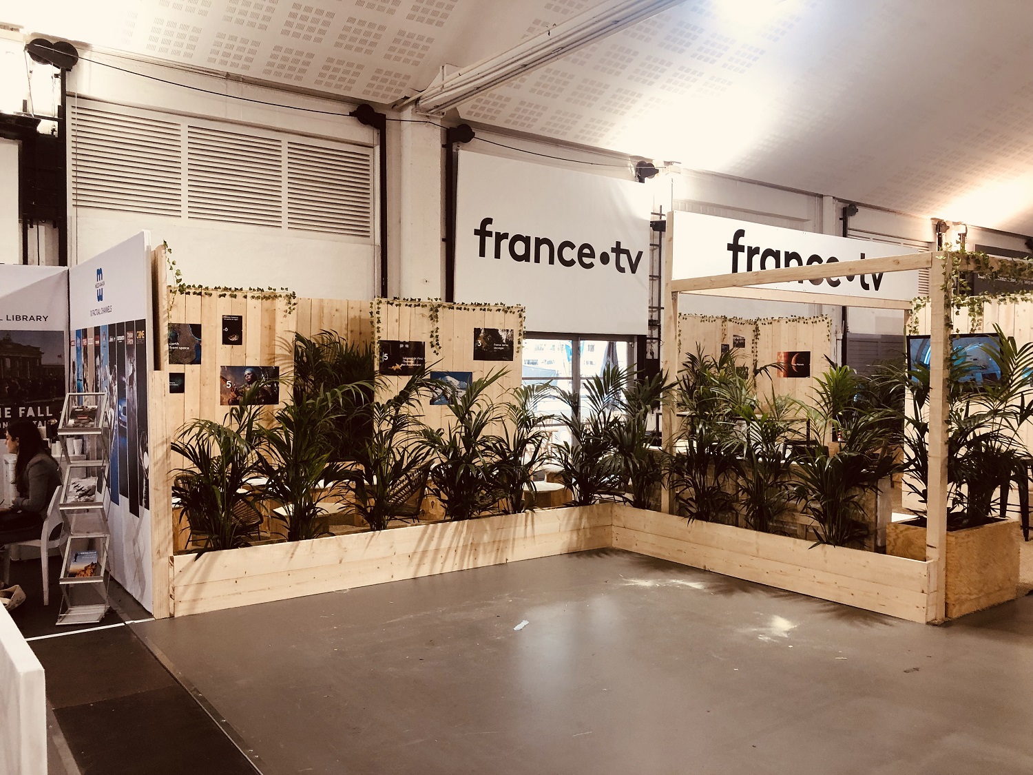 Nouvelle collaboration réussie avec les équipes de France TV qui souhaitaient une ambiance jungle pour la réalisation de leur stand au salon Sunny Side of the Doc de La Rochelle.